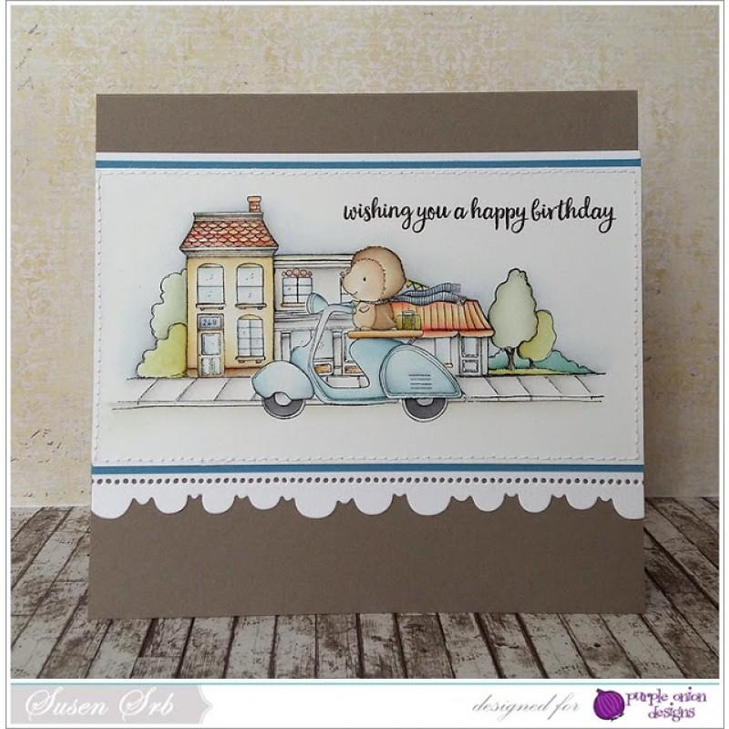 Purple Onion Designs continues to offer stamps in traditional red rubber to capture the fine detail that many of the designs contain. Red rubber inks up well and will work with all types of inks on the market. Clear stamps do not allow the same type of fine detail as red rubber. They also can be difficult to use with certain inks. These two qualities of red rubber will give you the best stamped impression possible.