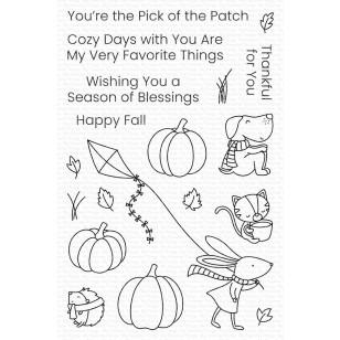 A windswept autumn day is ideal for getting the kite out of storage for one last adventure before the snowflakes start to fly. This set features a scarf-bedecked bunny enjoying the waning days of fall with friends. A trio of pumpkins is included to grow a perfect pumpkin patch to place your pals in. Happy fall!