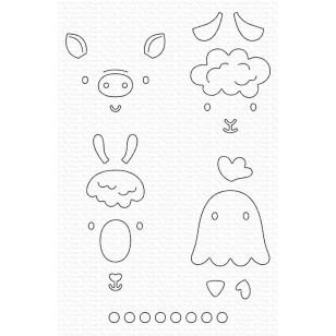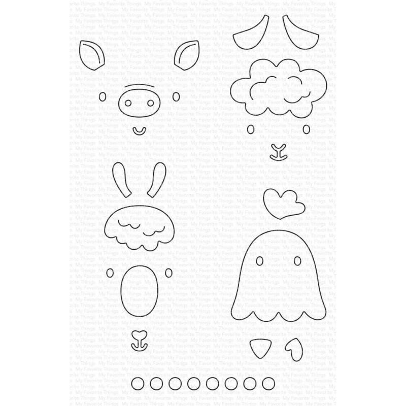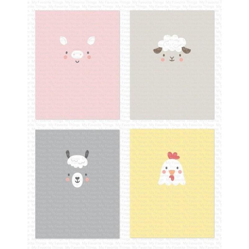 Add some oink, baaaaa, cluck, and hum to your projects with this quartet of fun farm faces. The ability to create inlaid animal faces makes this set ideal for notecards and invitations — perfect for ease of mailing! Each animal is comprised of a face element that will cut the ears, eyes, snout, and fur/feathers from your panel and a separate mouth, beak, or nose element that can be cut from the snout or layered on top. The cheek elements are separate as well to allow you the option of using them or not.