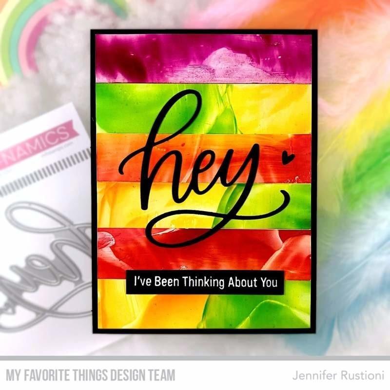 A simple, casual greeting rendered in a modern script font makes a fantastic addition to your collection of word stamps. Hey pairs beautifully with a vast array of sentiments already in your stash, making it endlessly versatile. This set features a generously sized word as well as a simple heart accent. The Hey Die-namics and Hey stamp set feature identically sized greetings.