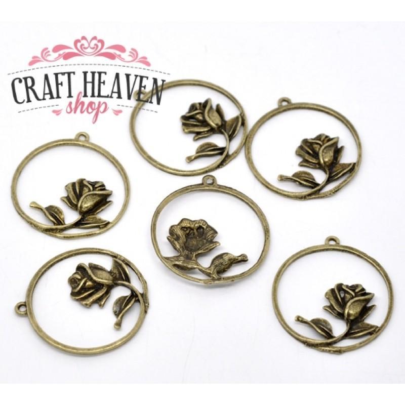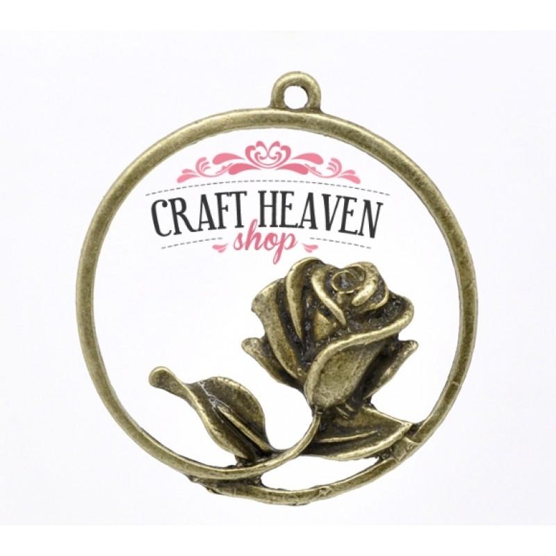 Rose flower - a beautiful vintage style bronze coloured metal charm.