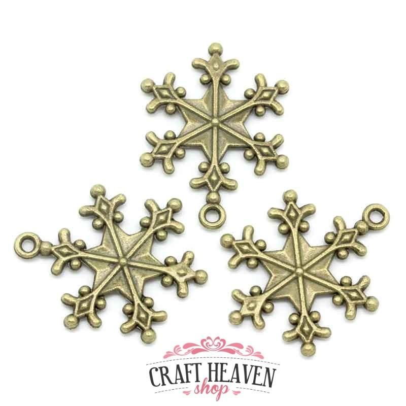 Snowflake - a beautiful vintage style bronze coloured metal charm.