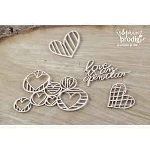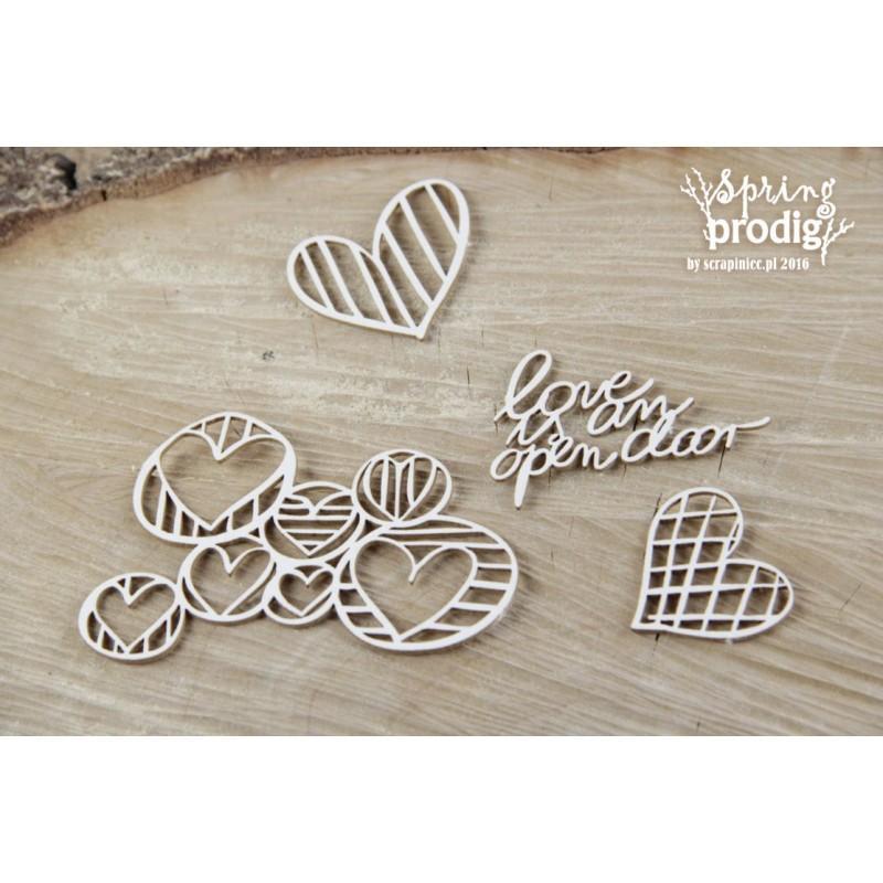 Decorative elements from 1,2 mm thick natural white chipboard.